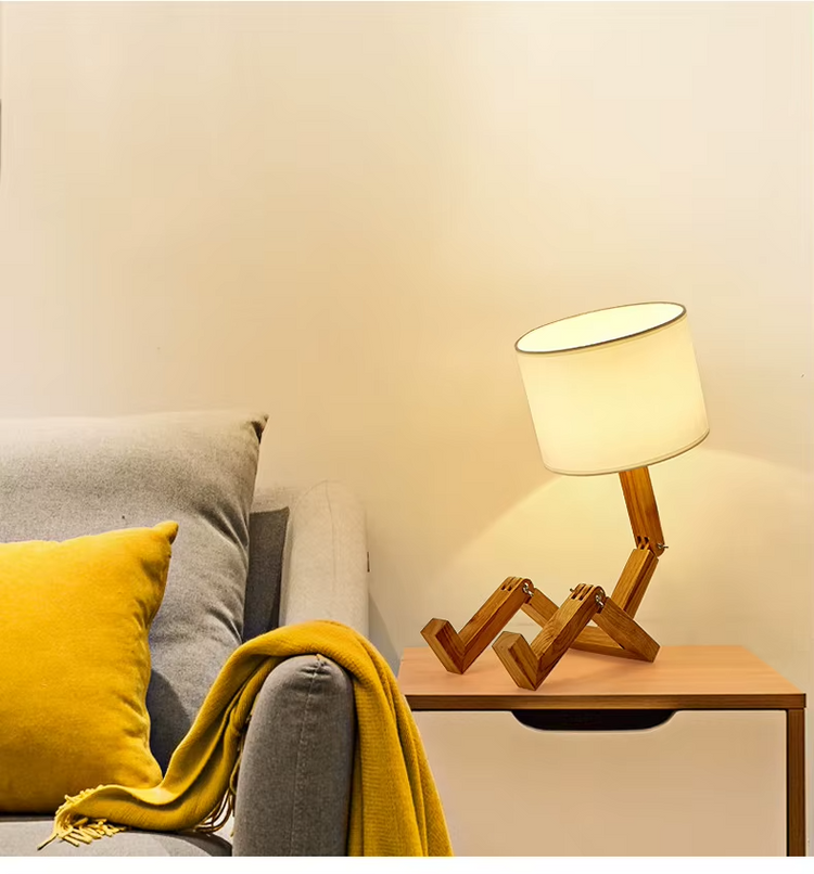 Découvrez notre lampe de chevet en bois au design surprenant, incarnant un adorable robot qui illuminera votre espace nuit avec caractère. Alliance parfaite entre artisanat et modernité, cette création unique apporte une touche d'originalité à votre table de nuit tout en diffusant une lumière douce et accueillante. Une pièce décorative qui raconte une histoire.